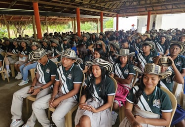 Estamos ubicados en el departamento de Córdoba, Colombia, atendiendo a 3000 estudiantes en tres sedes dentro del resguardo indígena Zenú.